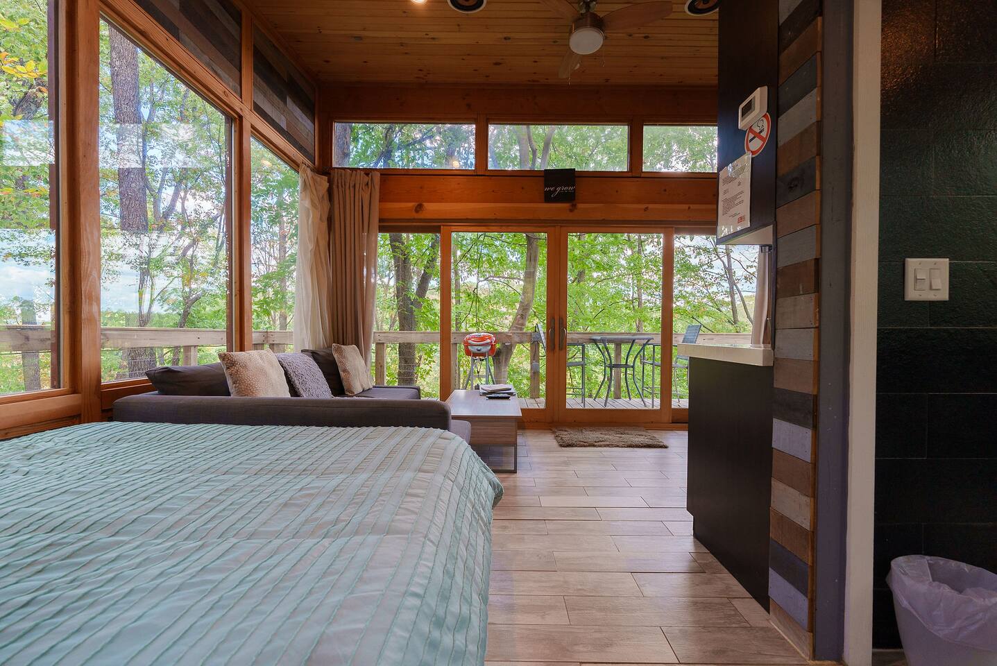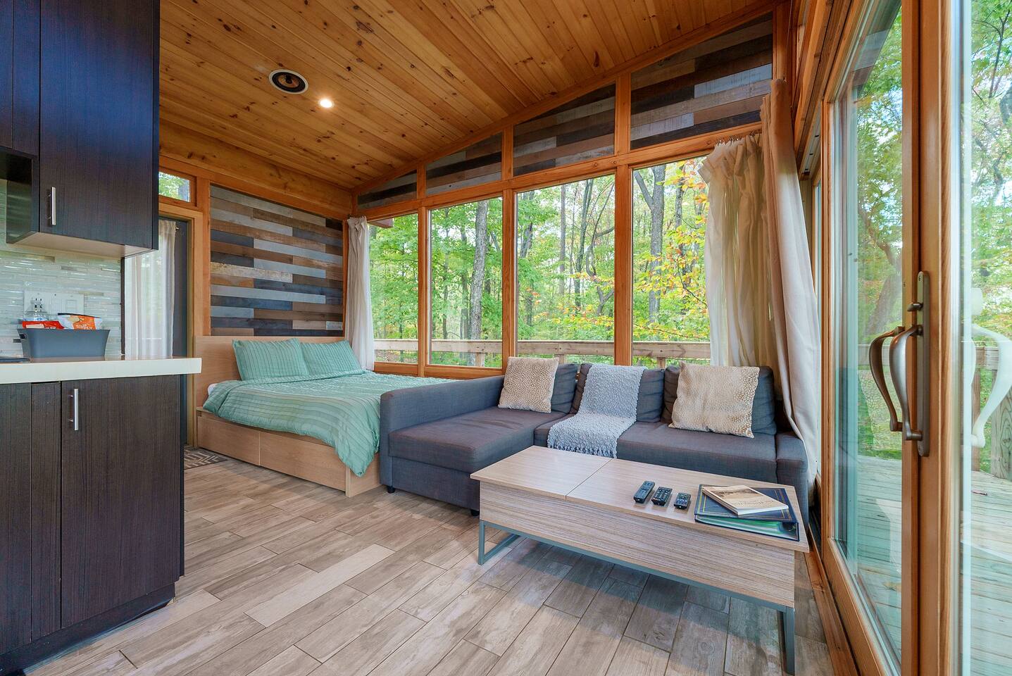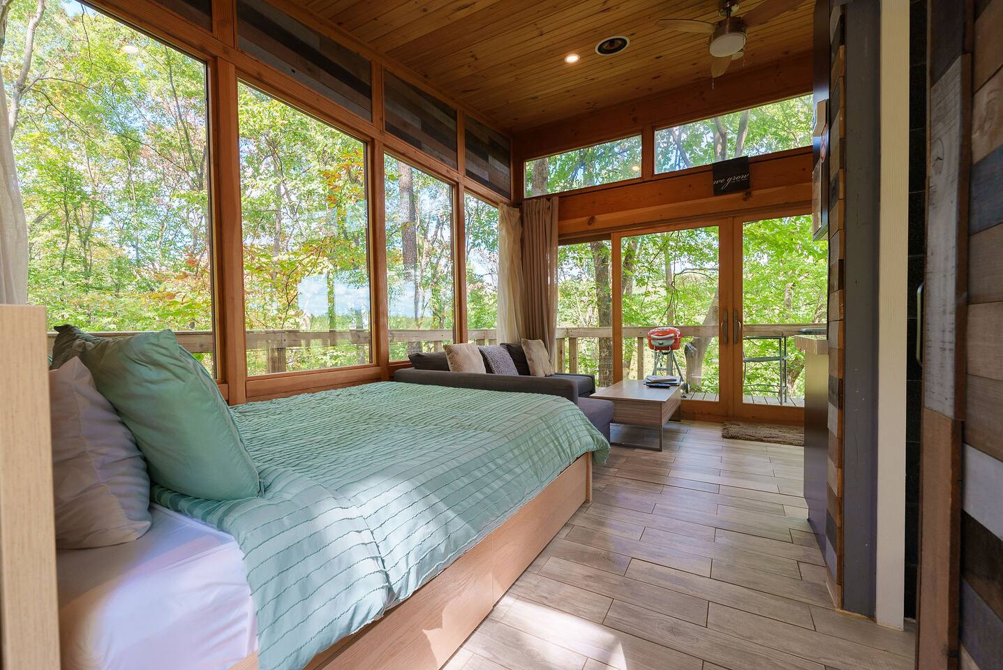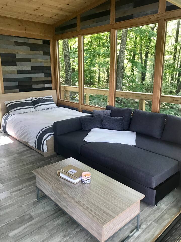 Welcome to our TREEHOUSE by Living The Dream Cabins! Relax and unwind among the trees in our cozy, studio-style tiny home. Enjoy the beauty of Hocking Hills State Park with incredible views from our wraparound deck, but also conveniently located approximately 15 minutes to Old Man’s Cave, Ash Cave, and Conkle's Hollow State Nature Preserve!