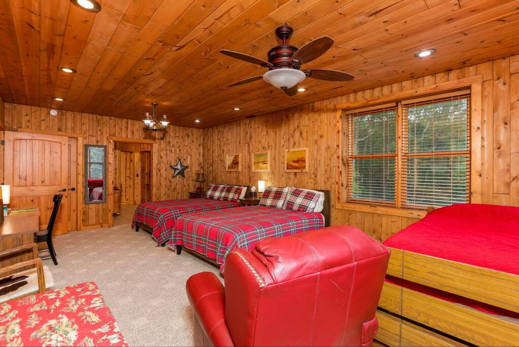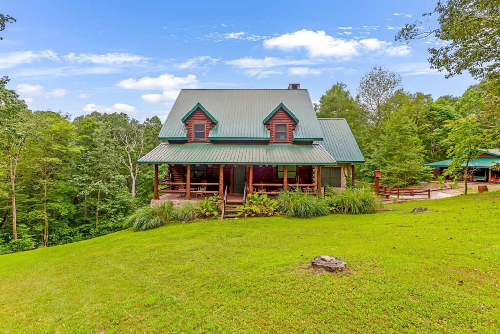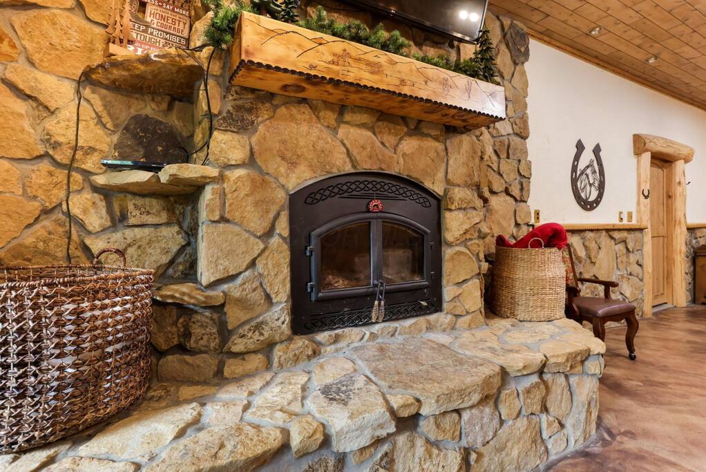 Luxury Lodge with Yellowstone Vibes + Over 4,000 sq. ft. + Just under 8 private acres + 3 huge bedroom suites and an additional loft + 4 fireplaces + 12-person hot tub + Secret game room with pool table, football, air hockey, ping pong, xbox, and board games Bring your horse! Our property backs up to state-owned land with 40 miles of bridle trails.